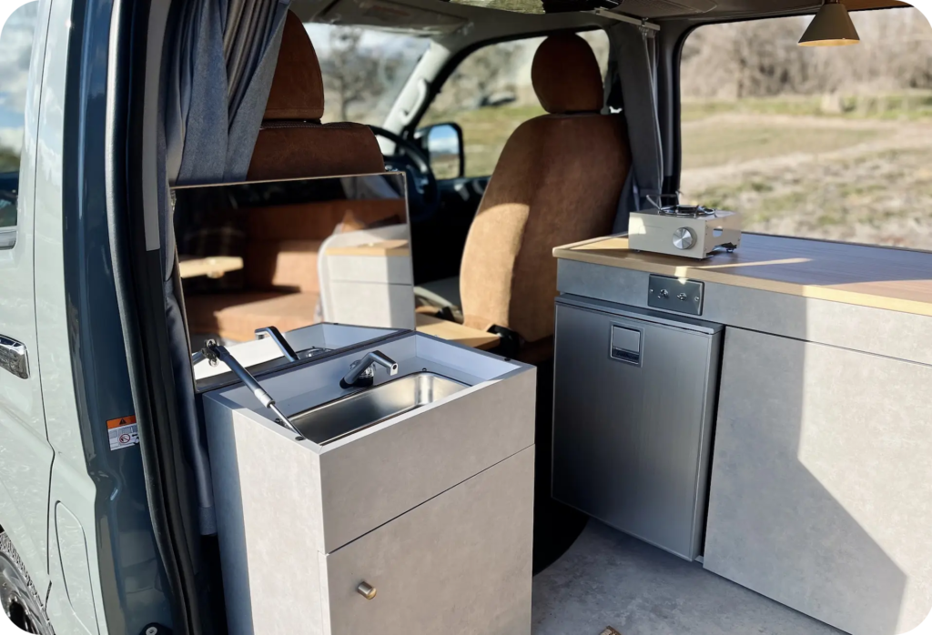 ・天井サイド断熱材 ・重歩行クッションフロア・外部充電システム・流し台