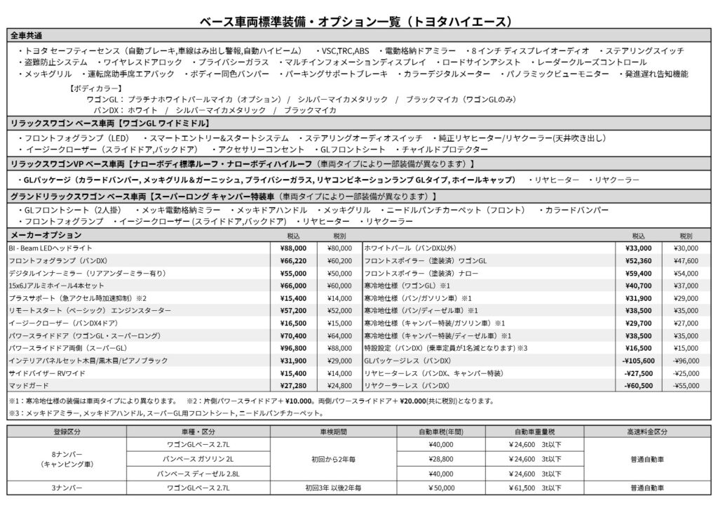 | ベース車両 | トヨタ ハイエース ワゴンGL 8ナンバー |