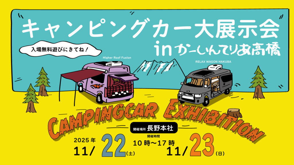 11月22日(土),23(日)にかーいんてりあ高橋長野本社にて【キャンピングカー大展示会】を行います!