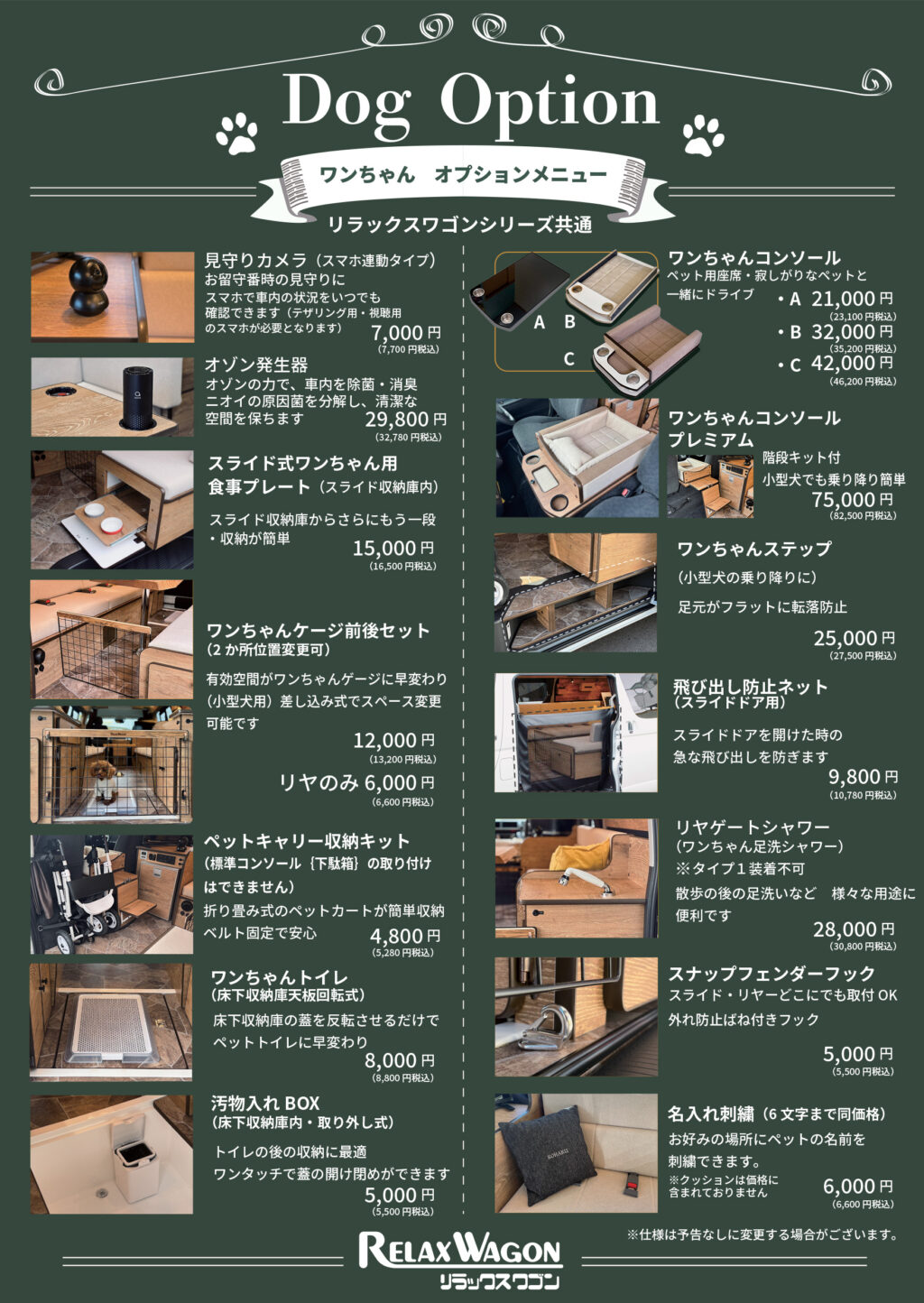 移動・休憩・お手入れまでを想定した多彩なペット向けオプションを取り揃えております。